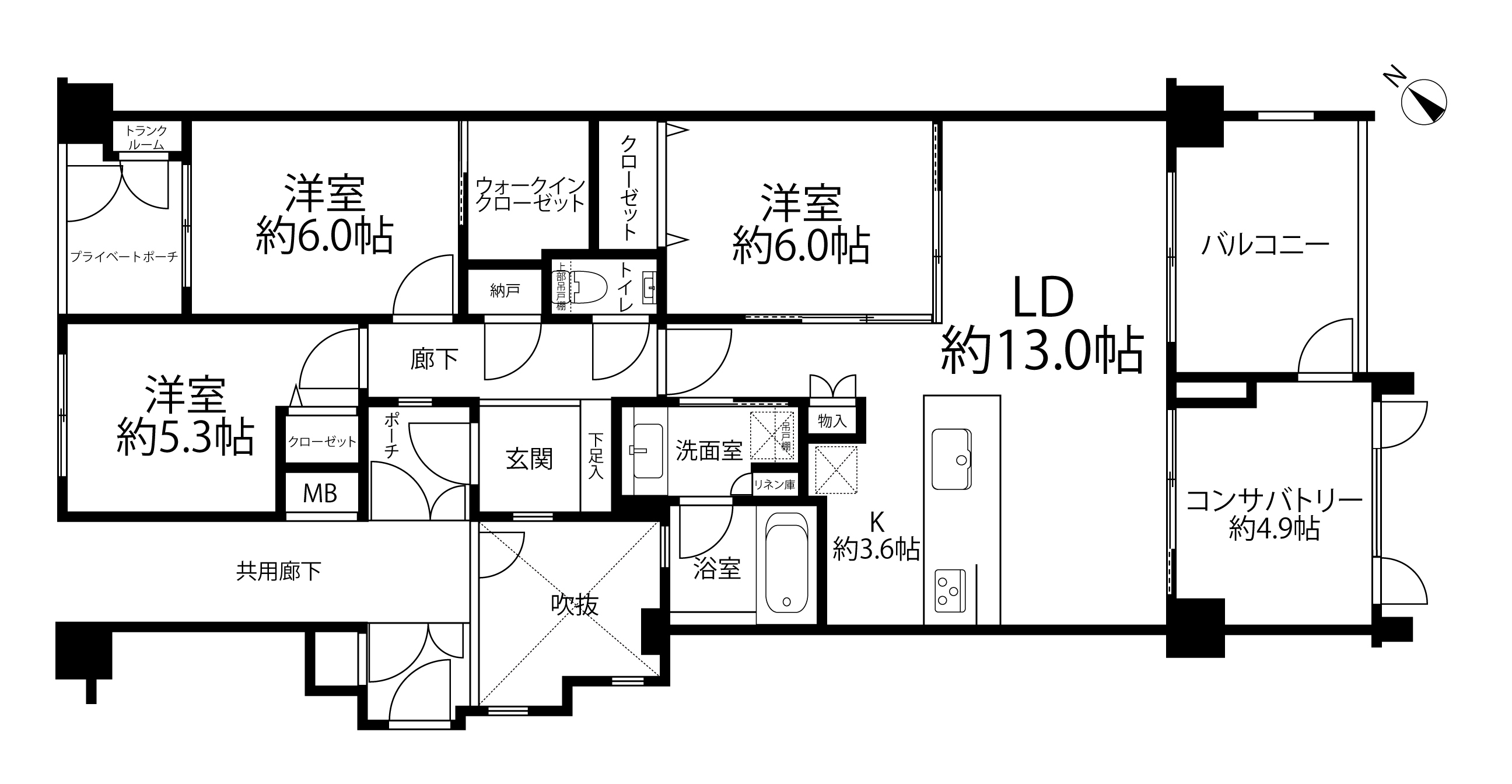 - ・プライベートポーチあり、豊富な収納(WIC、納戸、トランクルーム、物入あり)